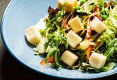 200/50 г • Салатный микс, тофу, зеленый горошек, руккола, перец сладкий, цукини, соевый соус, оливковое масло, рисовый уксус